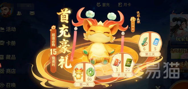 本次返利规则分为三档:累计充值金额低于200元,可享200%返利;充值区间为200至1000元(含),返利比例为150%以上;超过1000元部分,按100%计算返利。由此可见,前期小额投入具备更高单位价值回报,适合新玩家试水或资源积累初期使用。其中,6元首充档位尤为关键——仅需6元即可解锁限定外观“小神龙”,该皮肤在后续公测版本中将不再复刻,具备明确的收藏属性。