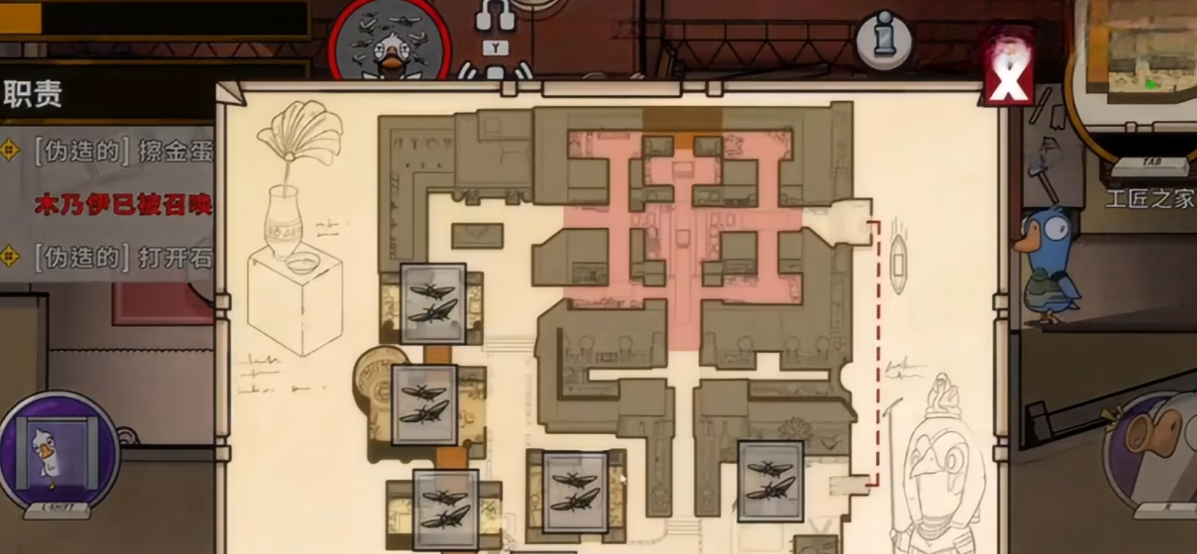 由于技能无阵营识别机制,施放前务必确认目标房间内无己方鸭子成员,否则将造成误伤,反而削弱团队战力。理想场景是诱使多名鹅(好人)集中于密闭空间后,配合封门+断电+蝗虫三重压制,实现高效减员。