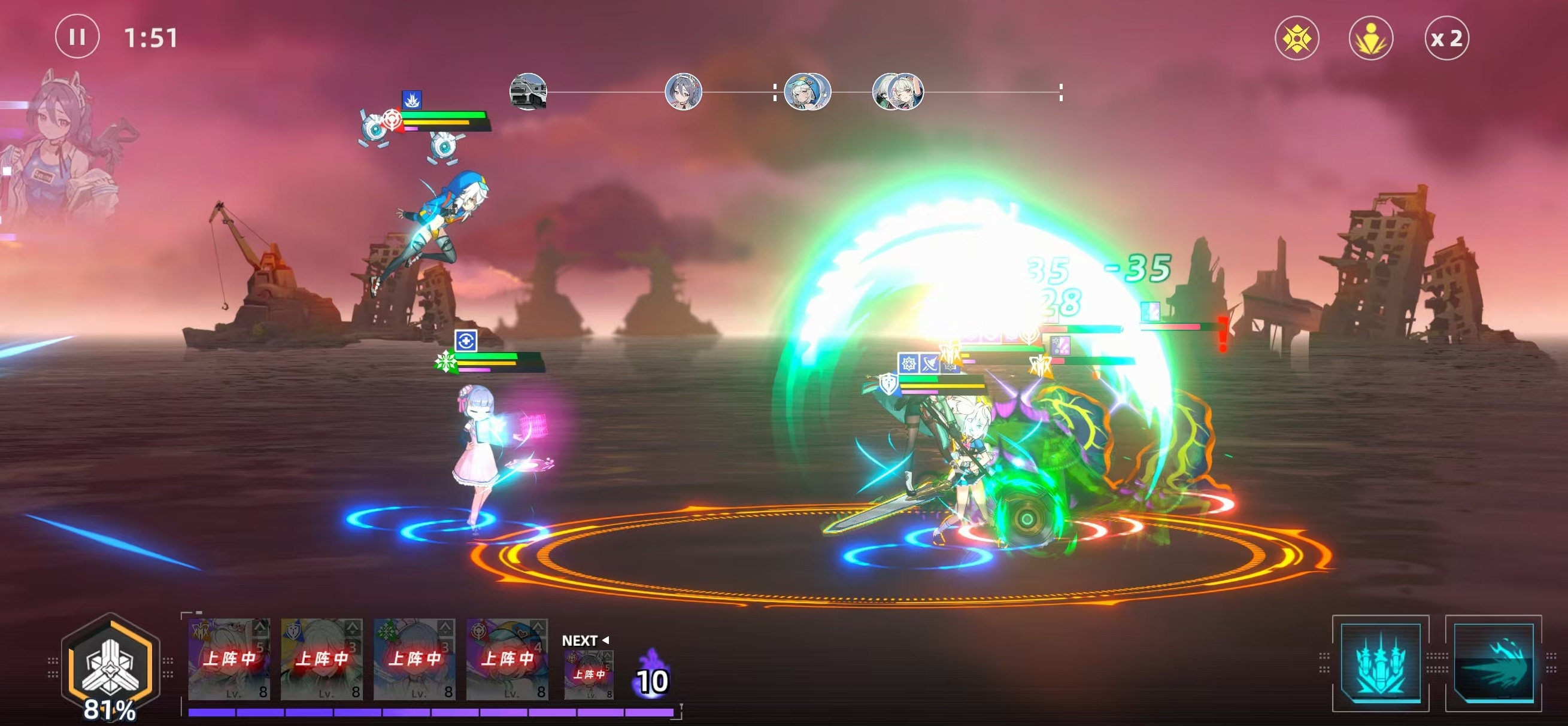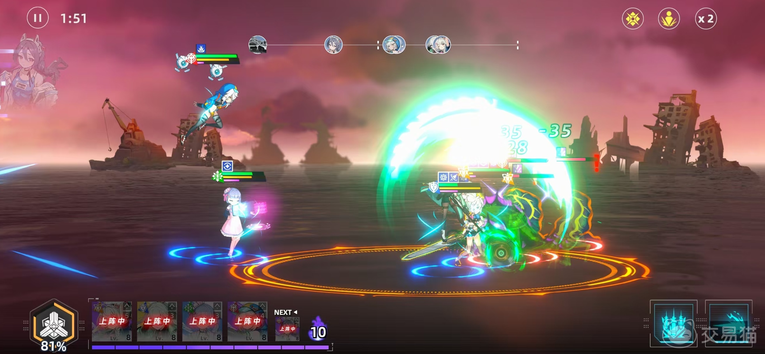 游戏核心玩法聚焦于“舰体深度定制”与“角色协同作战”两大系统。玩家可对武装舰进行多维度改装——包括主炮配置、护盾模块、推进系统及战术支援单元等,不同组合将直接影响战场火力覆盖、技能响应节奏与战术容错空间。每位登场少女均拥有独立属性、元素倾向与专属克制关系,需结合敌方深海巨兽的弱点类型、行动阶段与环境状态,动态调整站位、技能释放顺序与舰载支援时机,形成兼具逻辑性与临场感的回合制对抗体验。