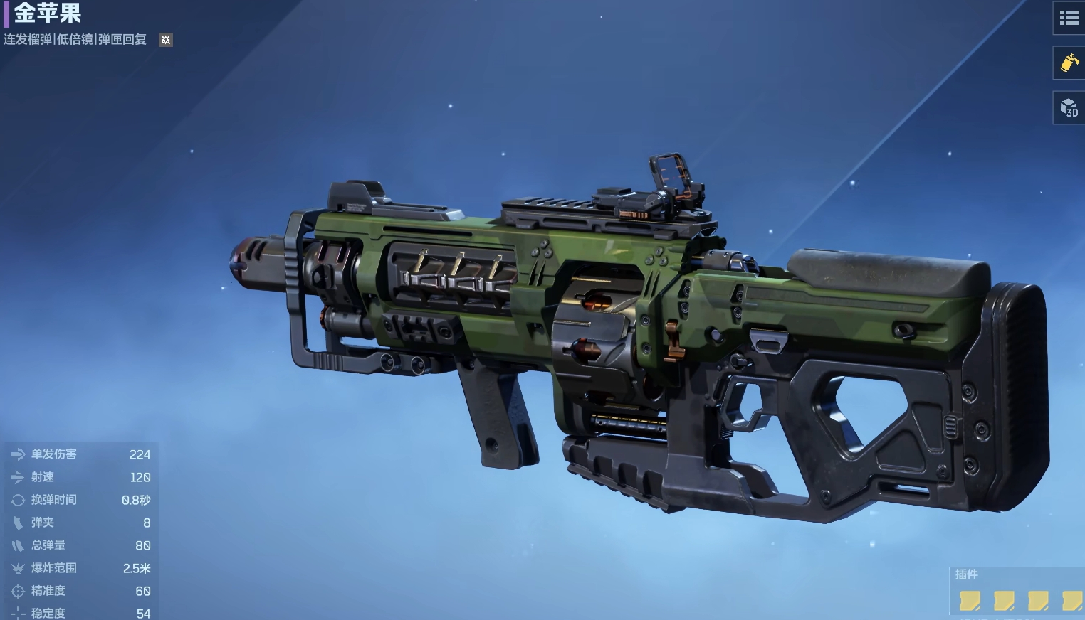 该武器具备四连发高爆发特性,并支持切换至龙炎弹模式,释放大范围AOE火焰伤害。在塔防模式下,敌人通常以密集编队持续刷新,缺乏单一高血量目标环境,因此龙炎弹的广域清场能力可高效压制多线推进的敌群,显著降低防守压力,是当前塔防体系中综合清怪效率最高的主战枪械之一。