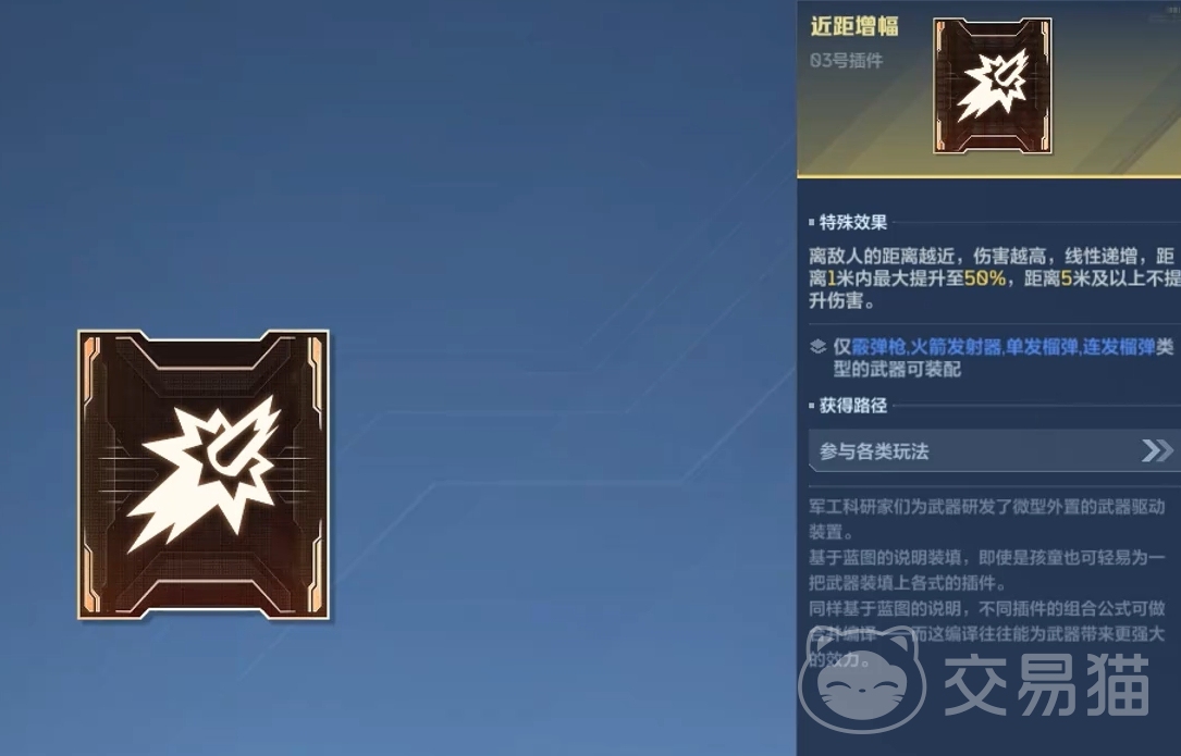 每把武器均设有四个固定插件槽位,各槽位功能独立、不可互换:一号位侧重弹药管理,二号位聚焦技能充能逻辑,三号位专精距离区间增益,四号位则承担通用型战斗强化。玩家需在插件装配界面中逐个进入对应槽位,查看该位置可搭载的全部插件列表。插件获取途径包括常规玩法奖励与商城兑换,其品质划分为蓝、紫、金三级,其中蓝色为基准品质,金色属稀有品级,紫色居于二者之间。