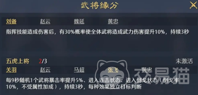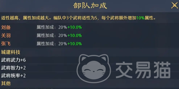 张飞布防于三号位,专注辅助增益与重伤补刀。“鼓破千雷”可同步提升自身攻击力与技能发动率(+10%),强化其主动施法能力;“重创”则作为关键重伤叠加手段,与关羽形成双线叠层体系。鉴于其技能格数有限,装备配置需优先保障上述两战法的稳定释放。全队必须统一配置3S级枪兵兵种,可获得全属性30%加成,且与桃园三人兵种适配度完全契合,进一步加快重伤累积速度,放大虚弱压制效果。