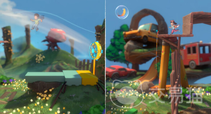 本作核心机制聚焦于双主角实时协同解谜。两名角色始终处于不同空间节点,一方操作机关将直接影响另一方通行条件。玩家需在二者间主动切换视角,同步分析两地状态,构建因果链路。该设定大幅拓展了解谜维度,既支持单人分屏操作,也兼容双人本地合作——后者对沟通效率与策略同步提出更高要求,显著提升过程趣味性与社交黏性。