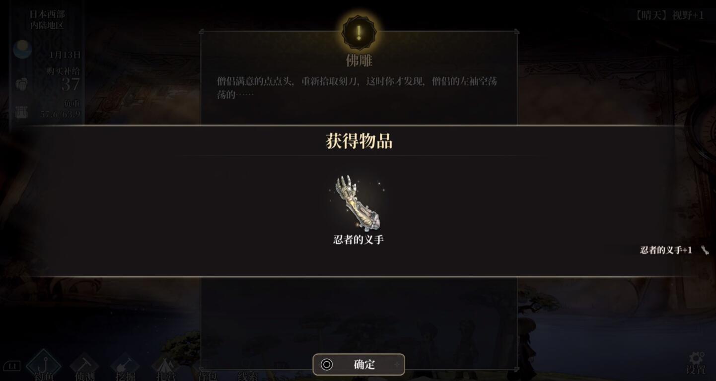 获取路径具有明确的剧情引导性:玩家需先前往那霸港区酒楼,与位于右侧的特定NPC展开对话,由此解锁“芦苇地的忍者”支线。随后系统将指引玩家前往东亚区域的潜狼溪——该地点为关键探索区域,深入其中完成对应线索搜寻后,即可获得“忍者的义手”。整个流程无随机掉落,不依赖概率,强调主动探索与任务推进。