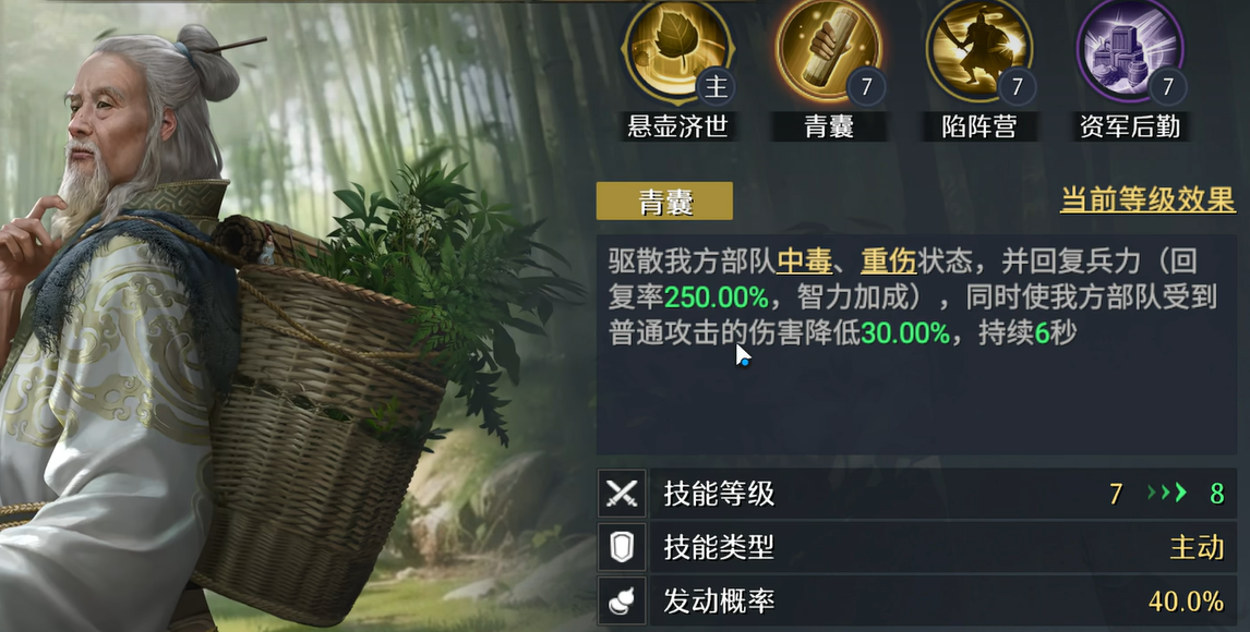 具体兵法配置需按角色职能精细化分配:华佗推荐轻兵急行、乐善、奋鼓,侧重提升治疗响应速度与群体支援效率;左慈适配并气积力、活力、固阵,兼顾自身续航与团队增益稳定性;张角则选择惜兵爱民、活力、固阵,在保障生存前提下最大化技能释放频率与伤害转化率。此套兵法组合在前期资源有限阶段即能显现优势,推图节奏流畅,遭遇突发战损亦不易崩盘。