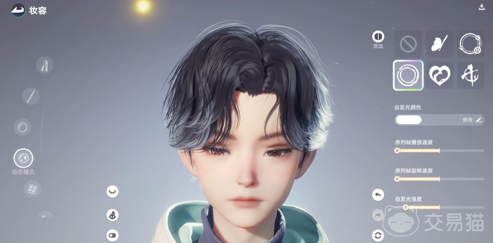 妆容系统具备动态视觉表现力,其中瞳孔效果尤为突出:支持自定义发光色相(如红、蓝等),调节光效强度与旋转角度,营造出具有沉浸感的魔幻眼神;同时提供自发光颜色独立设置,满足个性化视觉偏好。