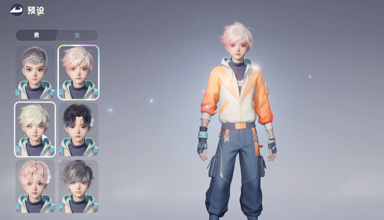 角色创建初始阶段,性别切换通过直观的男女图标完成。发型库涵盖丰富选项——女性可选高马尾,凸显灵动与朝气;亦可尝试粉色调短发,展现俏皮气质;男性发型虽以利落短发为主,但每款在层次、纹理与轮廓上均有差异化设计,建议结合个人审美倾向进行选择。