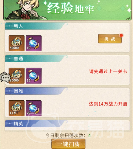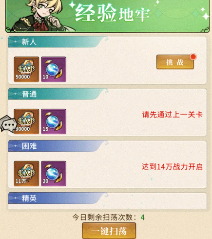 除主线推图与角色养成外,游戏内设有多元化副玩法,兼顾资源积累与策略深度。“丰饶地牢”支持探索与扫荡双模式,每类副本扫荡次数独立计算,免费次数用尽后可消耗钻石继续扫荡,稳定获取养成资源。