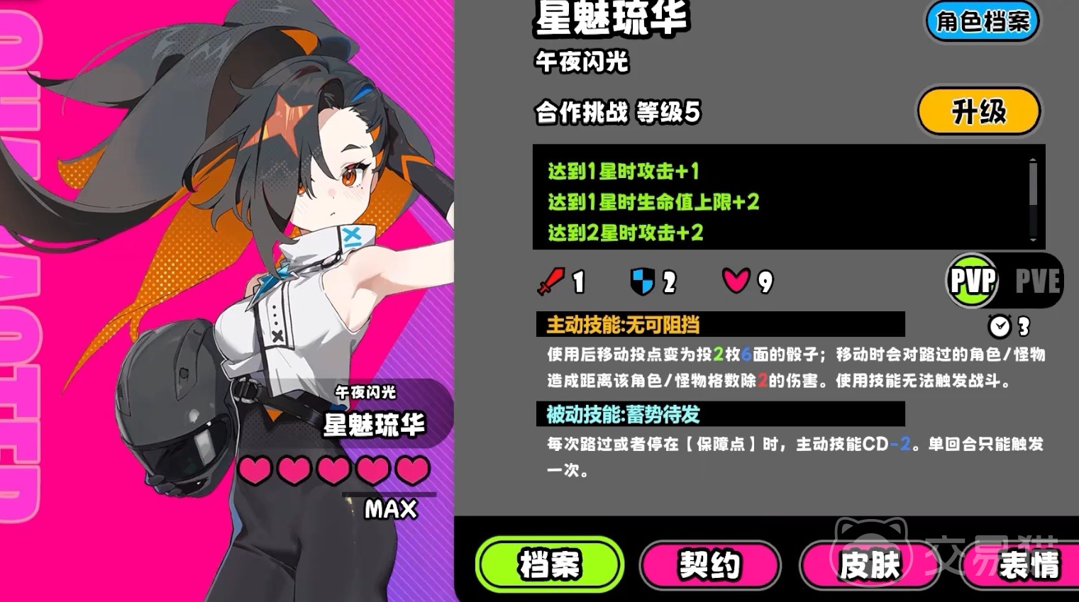角色成长体系方面,星魅琉华的合作挑战星级提升将带来以下属性增益:1星时攻击力+1、生命上限+2;2星时攻击力额外+2;3星时攻击力再+1、移动速度+2,并解锁两次强化筹码重选权限。