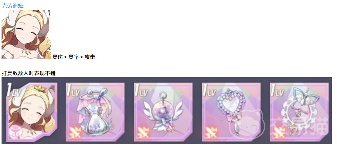 克劳迪娅则定位于群体压制型输出者。面对多目标战斗场景(如特定副本关卡或竞技场群战),其范围伤害技能具备显著优势。配装需严格遵循暴击伤害>暴击率>攻击力的权重顺序。该排序基于其技能倍率与暴击联动机制:当暴击伤害达到阈值后,配合稳定暴击率可实现伤害指数级跃升;而单纯提升攻击力带来的收益增幅明显低于暴伤堆叠路径。实战中,该配置使其在AOE环境下的DPS稳定性与爆发力同步增强。