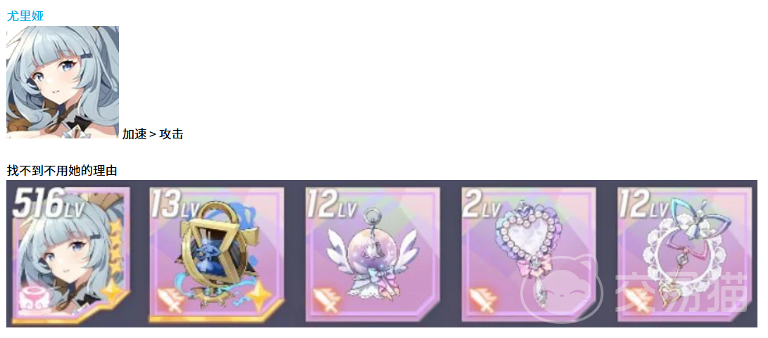 尤里娅是天使体系中的节奏引擎。其技能机制依赖高频率行动次数以持续施加团队增益效果,因此速度属性为绝对优先项。在装备选择中,应首选带有“速度”主词条的套装,副属性优先堆叠速度数值;攻击力作为次级属性,在确保基础出手效率的前提下再逐步补足。该配置逻辑源于其被动与主动技能均存在回合内多次触发设计,速度越快,单位时间内辅助覆盖率越高,整体队伍运转效率提升显著。