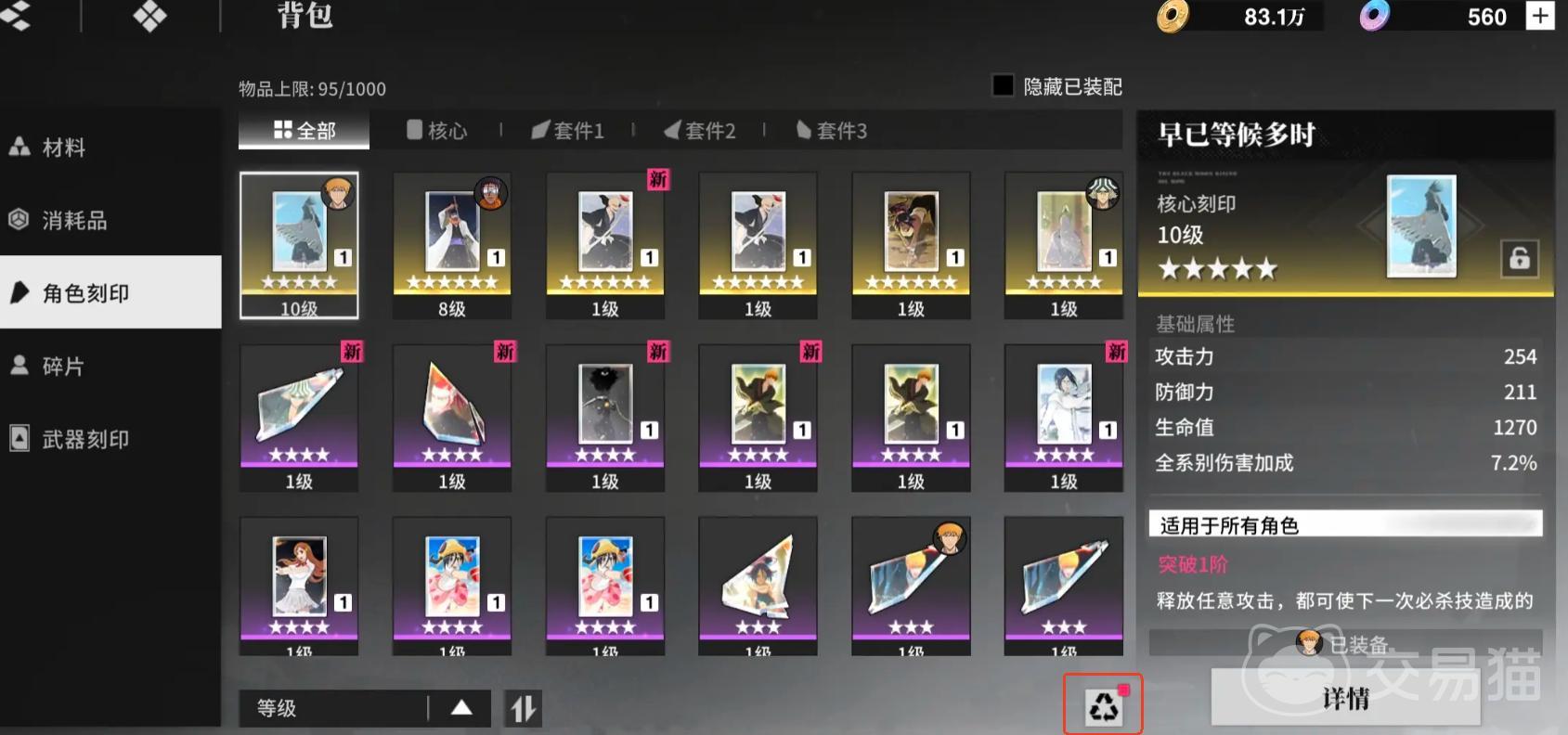 多余刻印具备双重用途:既可直接分解获取基础材料,也可作为升级素材投入新刻印培养。值得注意的是,无论采用哪种方式——分解或喂养——所转化的经验值完全一致,玩家可根据实际操作习惯灵活选择。