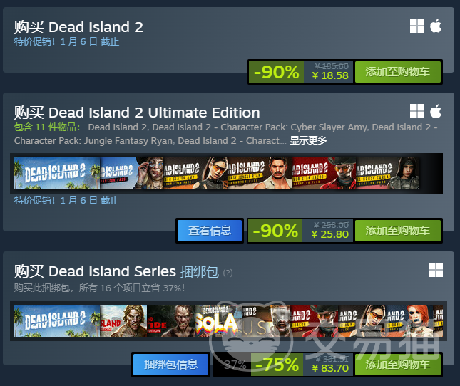 本次促销中,《死亡岛2》折后售价为18.58元,相比原价直降90%,相当于仅需支付一折费用。活动截止时间为1月6日,错过本轮优惠后,玩家将需按原价百余元购入。建议有意向的用户尽快完成购买,锁定低价权益。