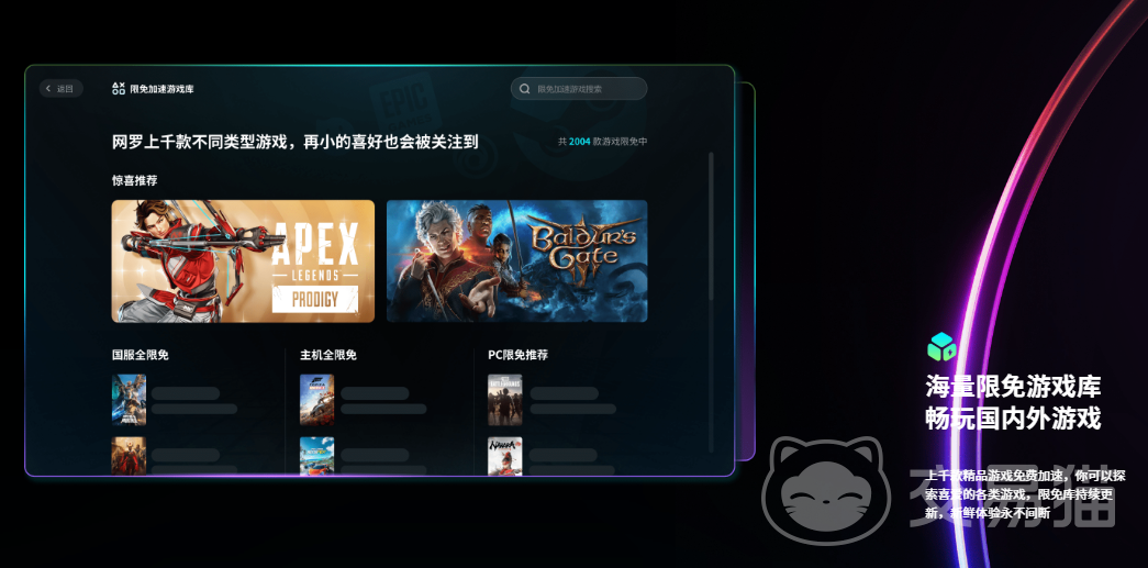 新用户注册后,系统将自动发放24小时全功能提速权限,无需手动领取;另设3日通用提速福利,用户需通过指定入口输入口令【biubiu不卡顿】激活使用。此外,冬季促销期间(12月18日至1月18日),平台同步开放限免加速服务,涵盖大量热门游戏作品,Steam平台下载任务亦在支持范围内。该限免机制长期有效,覆盖秋促、冬促及常规促销窗口。