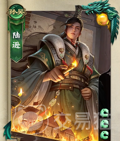 第三位是陆逊。他属于群体压制型武将,一技能可令一名角色交出一张手牌,随后全场所有与该牌花色或点数相同的牌均被弃置(即“焚”)。若本次焚牌总数达3张及以上,则所有被焚牌的角色各受到1点伤害。此效果在残血阶段极具威慑力;其二技能则在手牌数为全场最少时自动触发,摸一张牌,有效提升生存容错率。