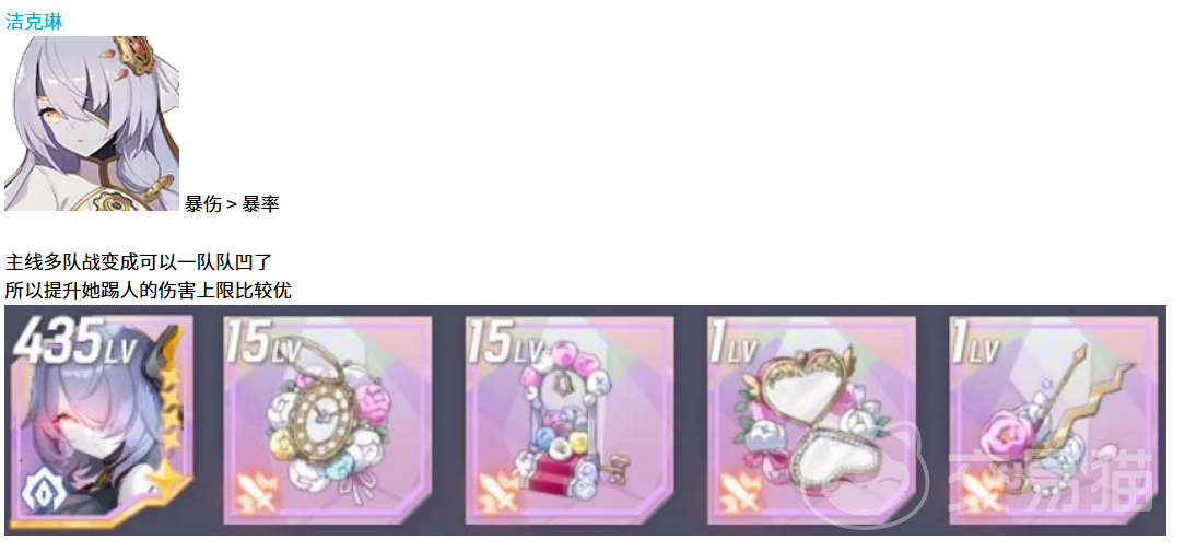 洁克琳的位移控制能力在多队协同作战中具有战略意义。“踢退”效果的触发稳定性直接受单次伤害上限影响,因此装备配置以“暴击伤害”为主属性,辅以适量“暴击率”确保命中阈值达标。其他属性如防御、体力对其功能实现无直接加成,应避免分散词条资源。