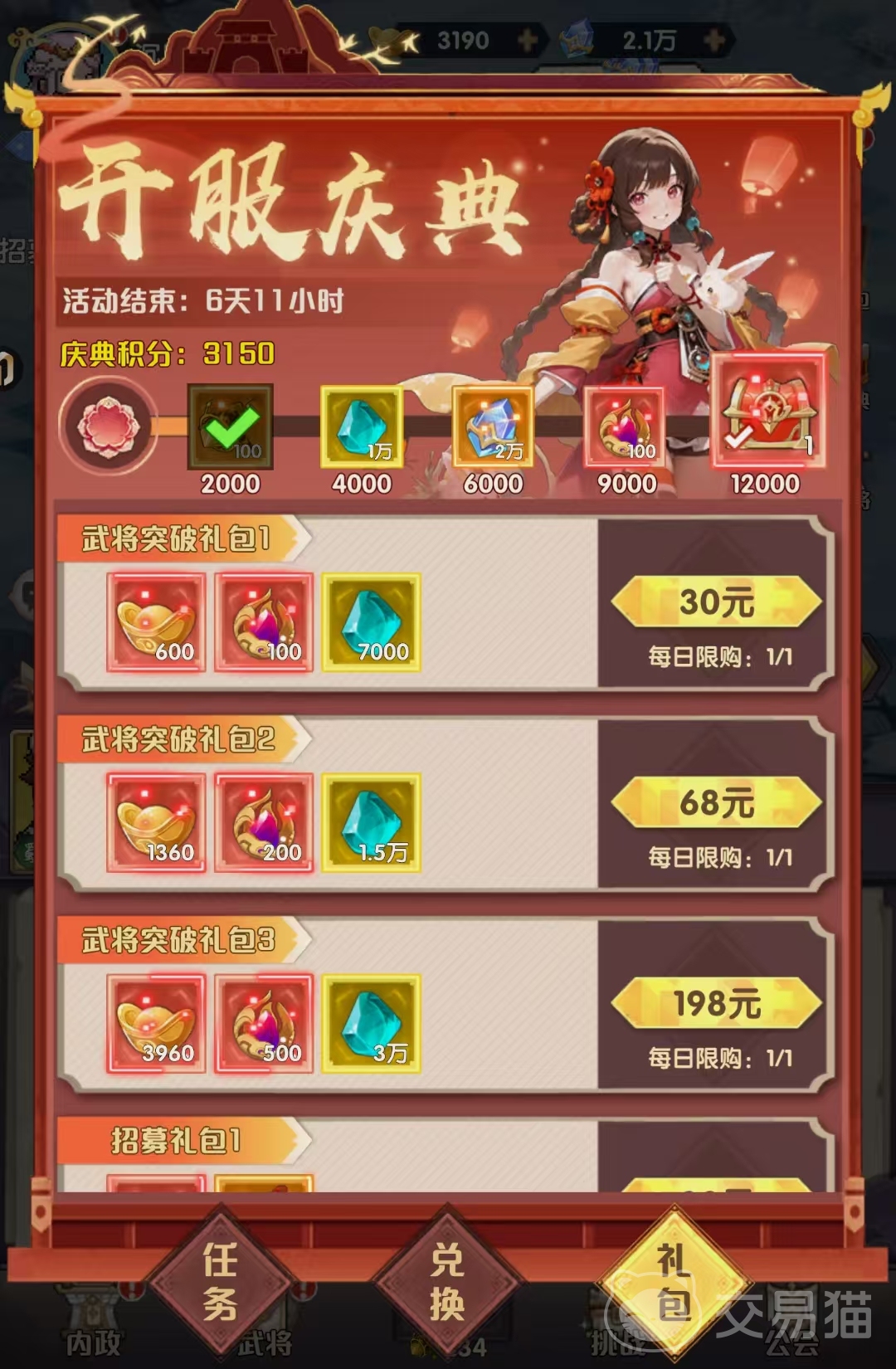 3、开服限定礼包——限时高价值组合。开服阶段上线的礼包中,“突破礼包”与“招募礼包”为最优选择:前者定向提升传说英雄星级上限,后者直接增加高级招募次数,两者均直击养成痛点,避免资源错配。