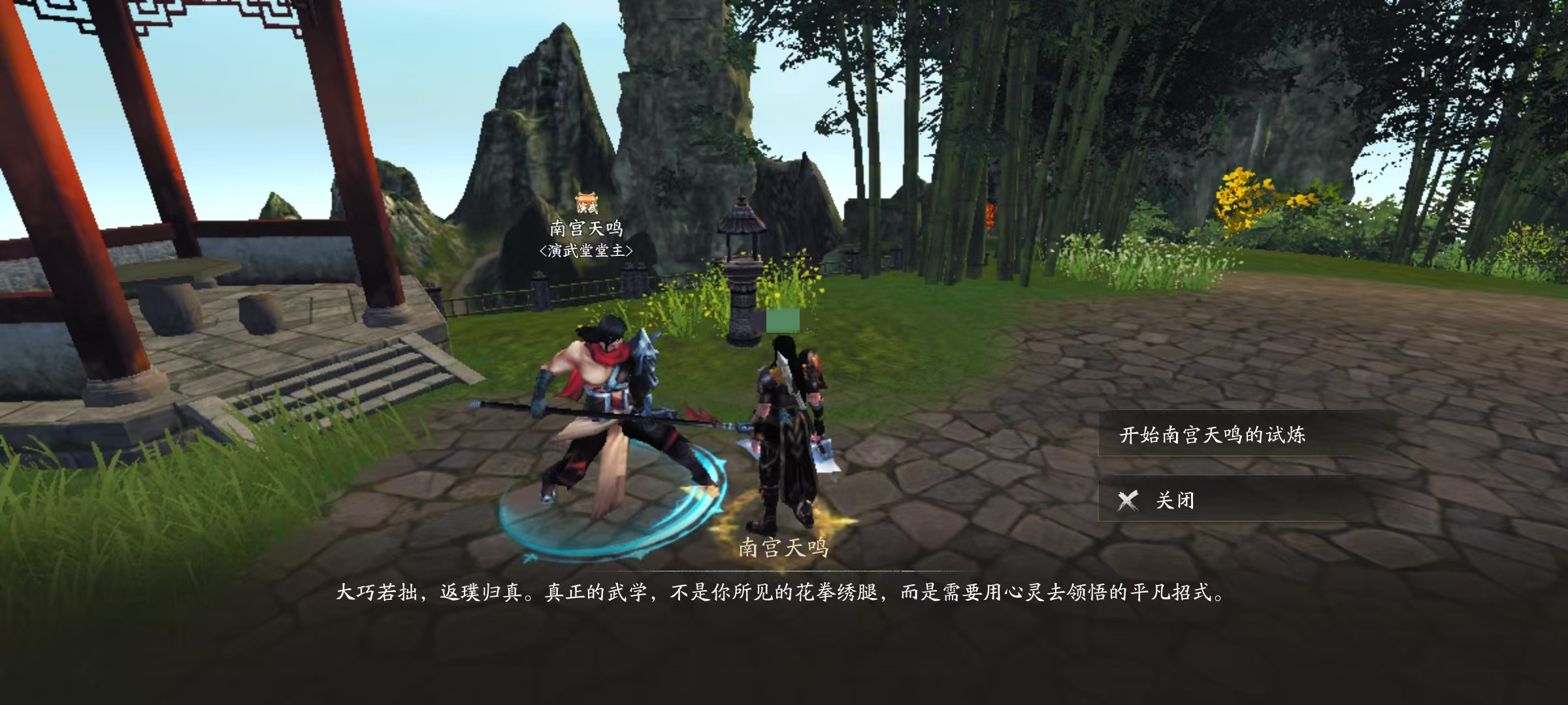 “大荒演武堂”采用环式递进机制,每周上限30环。玩家需组队前往南宫天鸣或念奴娇处接取首环任务,随后按提示依次拜访对应NPC并完成击败目标的要求。全程支持自动战斗丹辅助执行,大幅降低重复操作强度。任务过程中可同步积累演武积分,用于兑换专属道具。