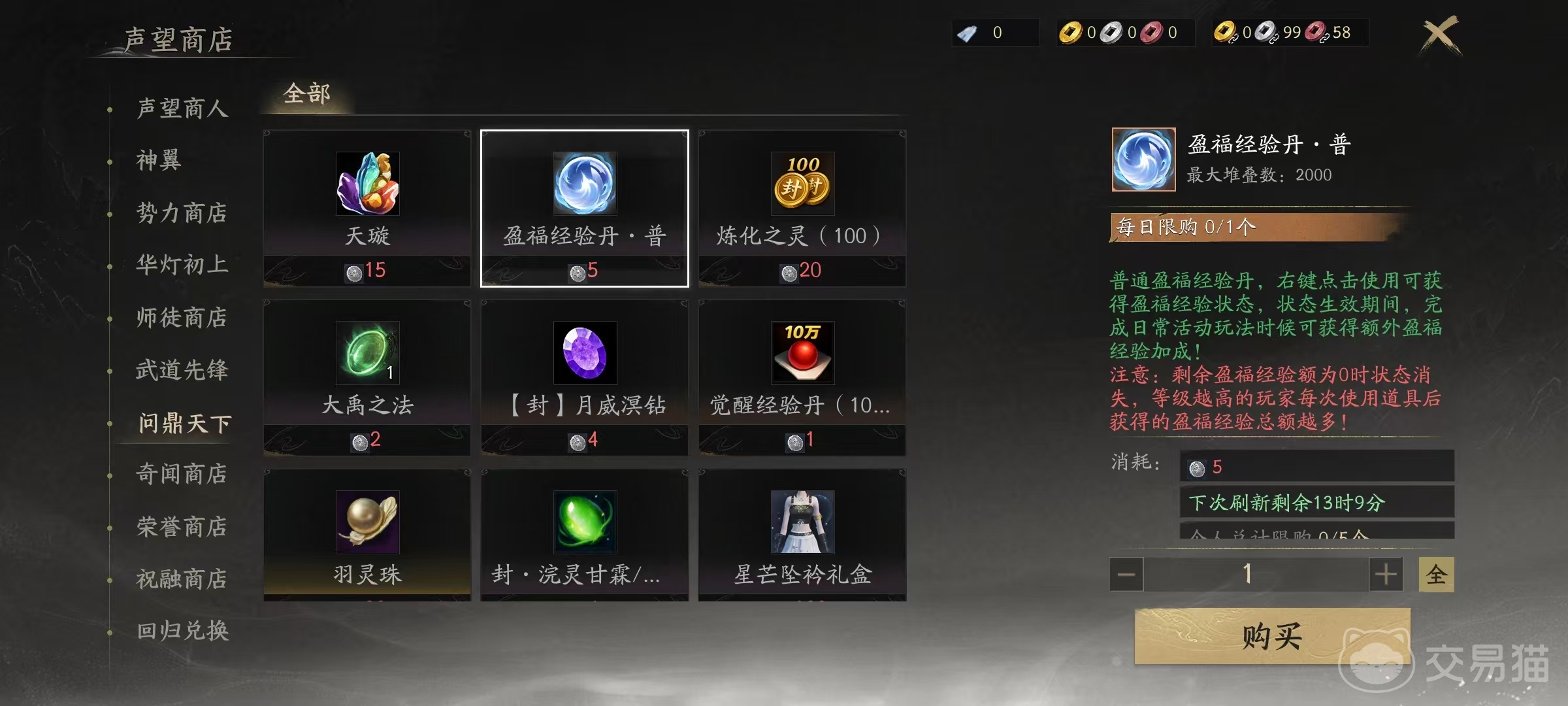 当前版本中共设七大主声望分支:传道授业声望、天宝声望、华夏王朝声望、炼化声望、大荒钱庄声望、王朝军资声望、天域声望。每种声望均对应独立获取逻辑与用途定位。以传道授业声望为例,其获取完全依托师徒关系——师傅每日首次为徒弟传功即可获得基础声望;当徒弟等级提升或成功完成出师任务时,师傅将额外获取增量声望,其中出师环节奖励最为丰厚。该声望专用于师徒商店,可兑换限定称谓、时装外观及功能性称号道具。