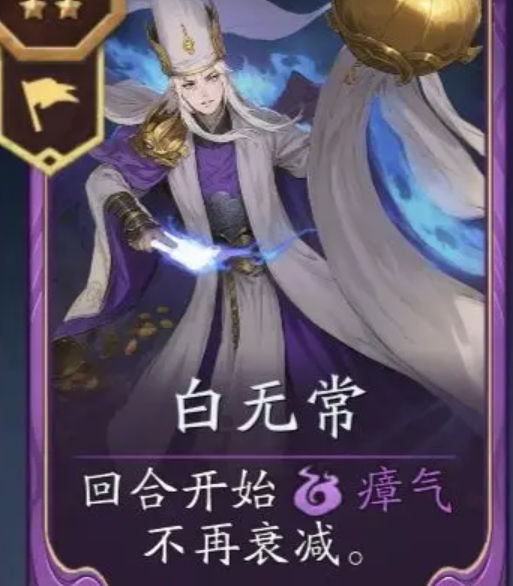 该流派对卡牌密度敏感,过早堆叠瘴气反而易导致单位数量不足,造成战力断层。因此需在瘴气增长节奏与单位补充节奏间寻求平衡。中期可借助“钟馗”“五岳”等高格位单位扩充阵容容量;“骷髅兵”“鬼新娘”则兼顾前期输出与鬼魂供给双重作用。进入中后期,黑白无常成为核心枢纽——二者本身数值扎实,且数量越多,瘴气转化与留存效率越高。当白无常完成三连,瘴气实现质变式跃升,体系即由稳步发育转入强势压制阶段。