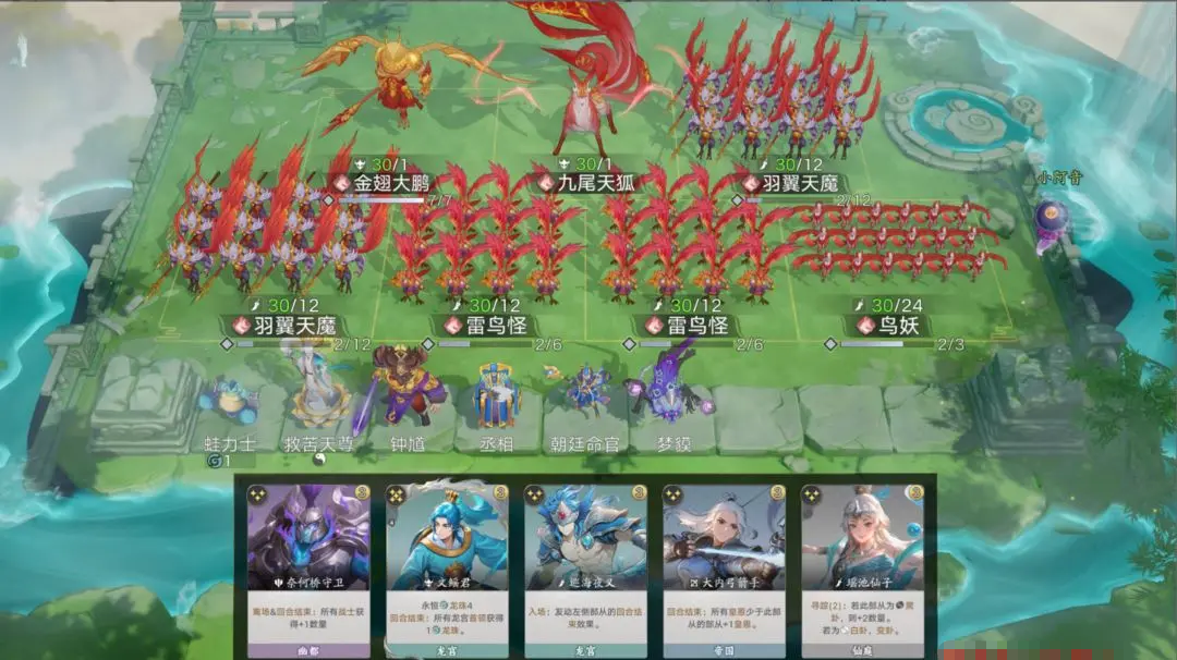 角色原型深度植根于《山海经》体系,涵盖各类精怪异兽,整体风格诡谲灵动。核心机制为“妖气”——随战斗进程自动累积,并转化为全队棋力增幅。该势力强调前期兵力密度与压制效率,往往在第3至5回合即进入爆发窗口期。优势在于快速铺场与高频压制,但对节奏把控要求极高:若未能在妖气充盈阶段完成关键击杀,后期将因资源衰减而陷入战力断档。