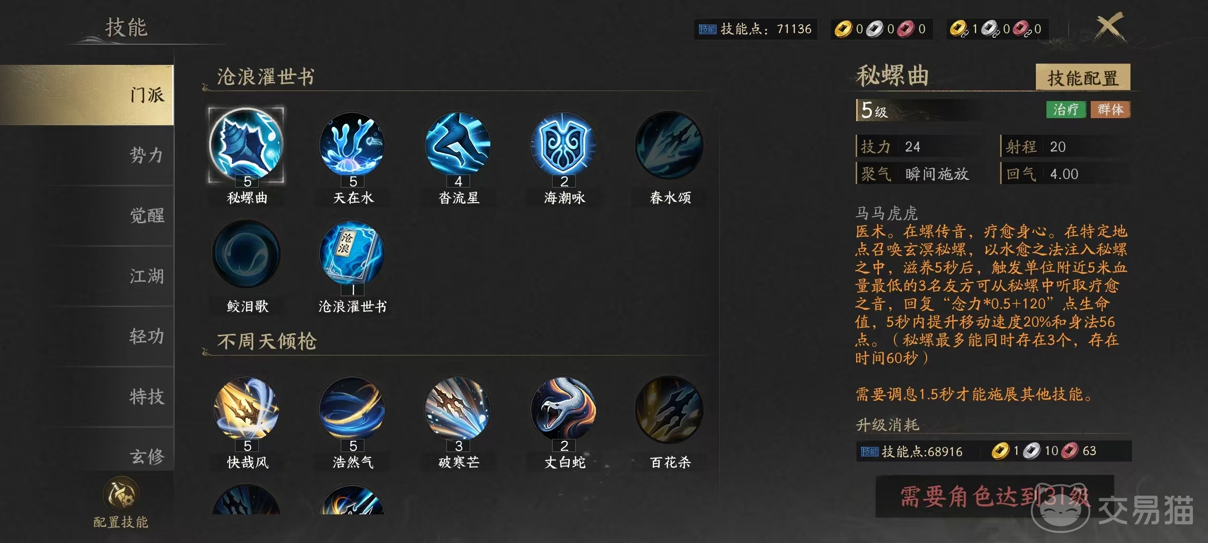 玄修是角色30级后解锁的深度养成模块,其本质是以门派技能为根基,对每个门派的技能体系进行双路径延展——即每项核心技能均分化出两条独立精修路线。玩家需从中选定一条作为“主玄修”,由此确立自身长期发展的技能侧重方向。系统初始提供最多33点潜在选修点数,需通过选修界面中的“转换”功能,消耗金币与技能点,方可将其转化为可自由分配的选修点数。