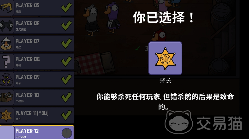 轮抽流程采用线性顺序制:一局游戏共提供十余种可选身份,首位玩家享有最充分的选择权——所有身份均处于未被选取状态,可依据自身熟练度、当前队伍构成及战术倾向,优先挑选目标门槛较低、容错率较高的身份,例如部分基础角色任务简单、干扰项少,特别适合新手建立操作信心与节奏感。