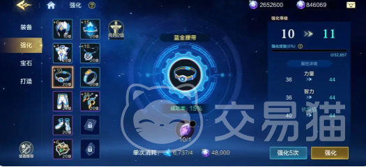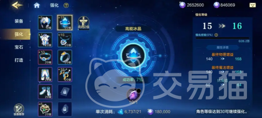 强化成功率随等级提升呈非线性下降。1–10级成功率较高且稳定;11–15级需谨慎操作,此区间每次强化消耗魔晶数量显著增加;角色未达30级时,强化上限锁定为15级。特别注意:强化至10级后开放五连强化功能,支持批量处理,大幅提升操作效率。但系统默认一键强化会优先消耗非绑定魔晶,且无二次确认提示,极易导致珍贵资源误用。务必切换至手动模式,逐次选择绑定/非绑定材料。幸运道具仅在强化等级10–24级生效,使用后可使单次成功率翻倍,建议集中用于11–15级关键突破节点。