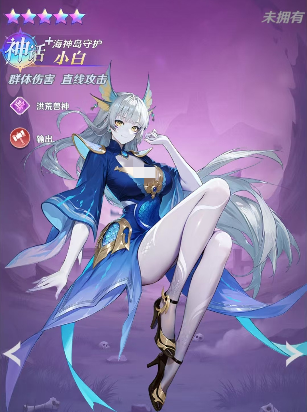 小白排名第五,专精直线路径型群攻。其大招机制为每完成8次普攻后召唤一条大白鲨,沿直线贯穿多个敌人。专属被动提升技能对普通怪物的伤害倍率,并在技能击杀目标后减少下一次大招所需普攻次数1次,显著优化清图节奏。尽管在竞技场受限于攻击方向固定,但在推图效率方面优势明显。