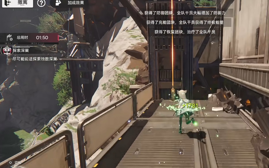 第二处机关区域难度升级,平台结构更复杂,同时新增大量绿色增益道具。此类道具作用于整支队伍,可同步强化攻击、治疗、防御三项核心属性,属于不可替代的战略资源。建议优先清理路径上所有绿色道具,确保团队综合战力达到阶段性峰值,从而从容应对第三波高威胁敌人。