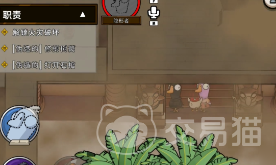 鸭阵营承担干扰与压制职能,具备主动进攻能力。其胜利方式同样包含两种:一是数量压制——当猎鹰角色不存在于场上,且其余存活玩家总数小于或等于鸭子数量时,鸭阵营即时获胜。该条件要求鸭子玩家精准控制击杀节奏,避免过早暴露身份导致被集中排查。二是破坏胜利——任意鸭子触发破坏技能(如火灾、断电等)后,若倒计时结束时仍有未修复的故障点,则鸭阵营获胜。此机制强调对地图关键设施的针对性干扰,以及利用混乱窗口延缓鹅阵营任务推进速度。
