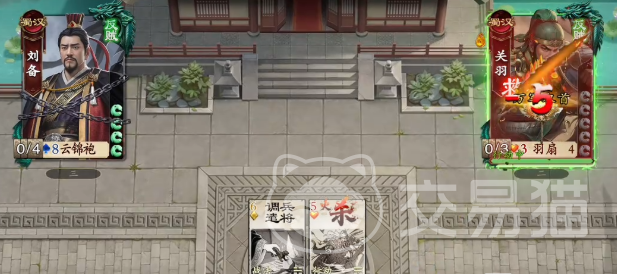 行动起始阶段,优先使用三张【夺粮劫营】。首张目标锁定刘备,强制获取其手牌中的【调兵遣将】;后两张分别针对关羽,依次夺取【藤甲】与【丈八蛇矛】。此举既削弱关羽防御与输出稳定性,又为后续火属性叠加创造条件。需特别注意目标选择准确性——误取其他牌将导致连锁反应失败,节奏彻底断裂。完成夺取后,立即装备【藤甲】,随即对关羽使用【调兵遣将】,并指定效果目标为“杀我方”。此操作将触发关羽主动技能“万军取首”,对我方造成高额伤害的同时,也同步激活火属性灼烧效果。