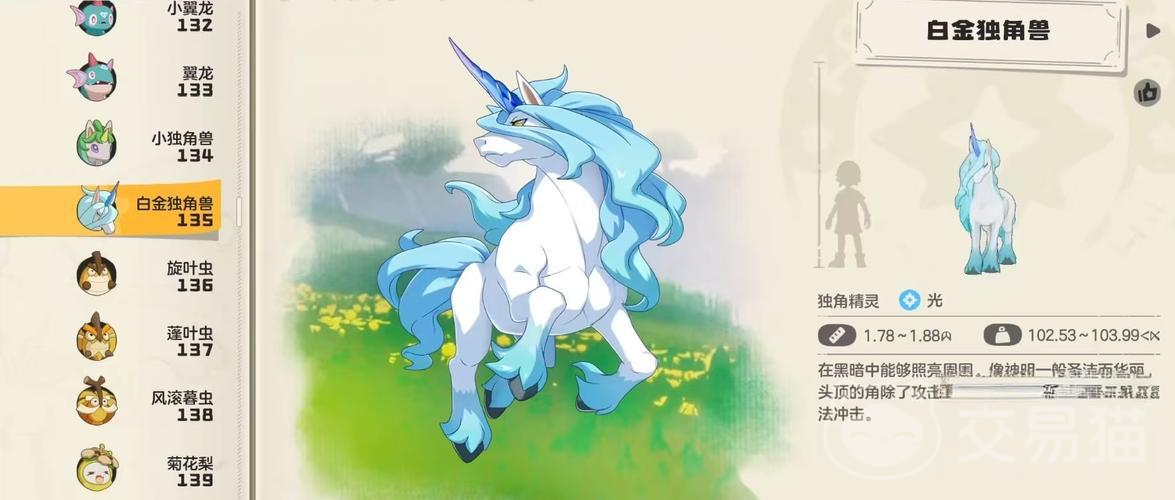 白金独角兽是当前陆地坐骑中移速上限最高的个体,被广泛视为陆地系顶配选择。在开阔地形下骑行,可体验接近极限的流畅位移感。该精灵需在游戏进程推进至中后期方可捕捉,且培养周期较长、资源投入较高,适合有明确长期规划的训练师。