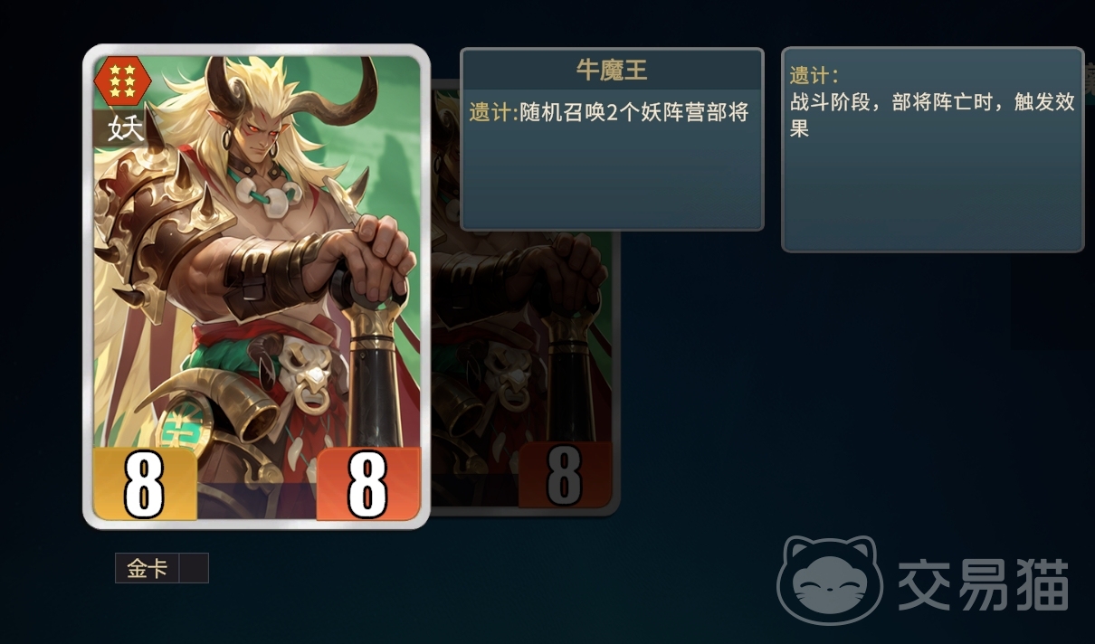 该流派围绕四星部将玉面狐狸展开,核心机制为“友方召唤妖族单位时,玉面狐狸攻击力永久叠加”。由此形成正向循环:每名被召唤的妖族部将(如白象精、牛魔王)既是功能性工具人,又成为玉面狐狸持续强化的触发节点。阵容最终成型后,输出能力稳定且呈指数级增长。因玉面狐狸获取门槛低,商店刷新频率高,仅需三张即可合成金卡,整体组建节奏快、容错率高。推荐终局配置为双白象精+双牛魔王,专职承担召唤职能,确保玉面狐狸叠层效率最大化。