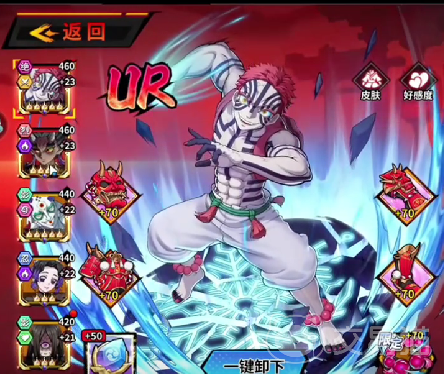 传说级武将是本作战力体系的核心支柱,其机制设计兼顾强度上限与战术适配性。其中,猗窝座位列T0梯队——原为人类剑士狛治,经鬼化后晋升为上弦之叁。该角色以高爆发近战格斗见长,技能组具备显著的单体破坏效能,尤其在连段压制与破防衔接方面表现突出,需配合精准的释放节奏方能最大化输出潜力。