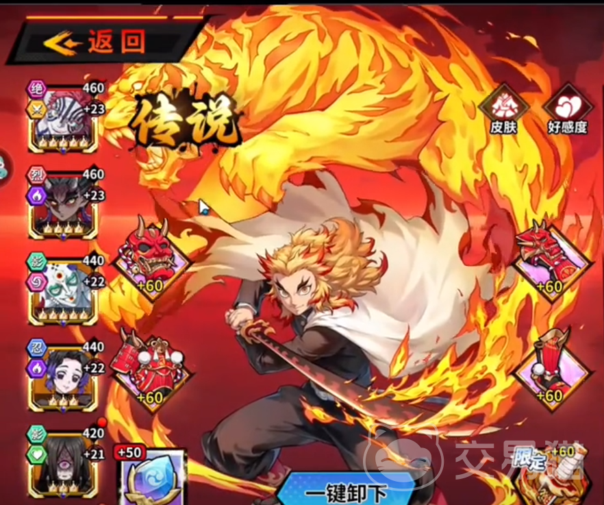 炼狱杏寿郎同属顶级战力序列,核心优势在于群体持续灼烧伤害,是“裂系”阵容中不可替代的主C担当。其技能可叠加多层燃烧效果,并与领域类增伤角色形成高效协同,适用于长时间消耗战及高密度敌群清剿场景。