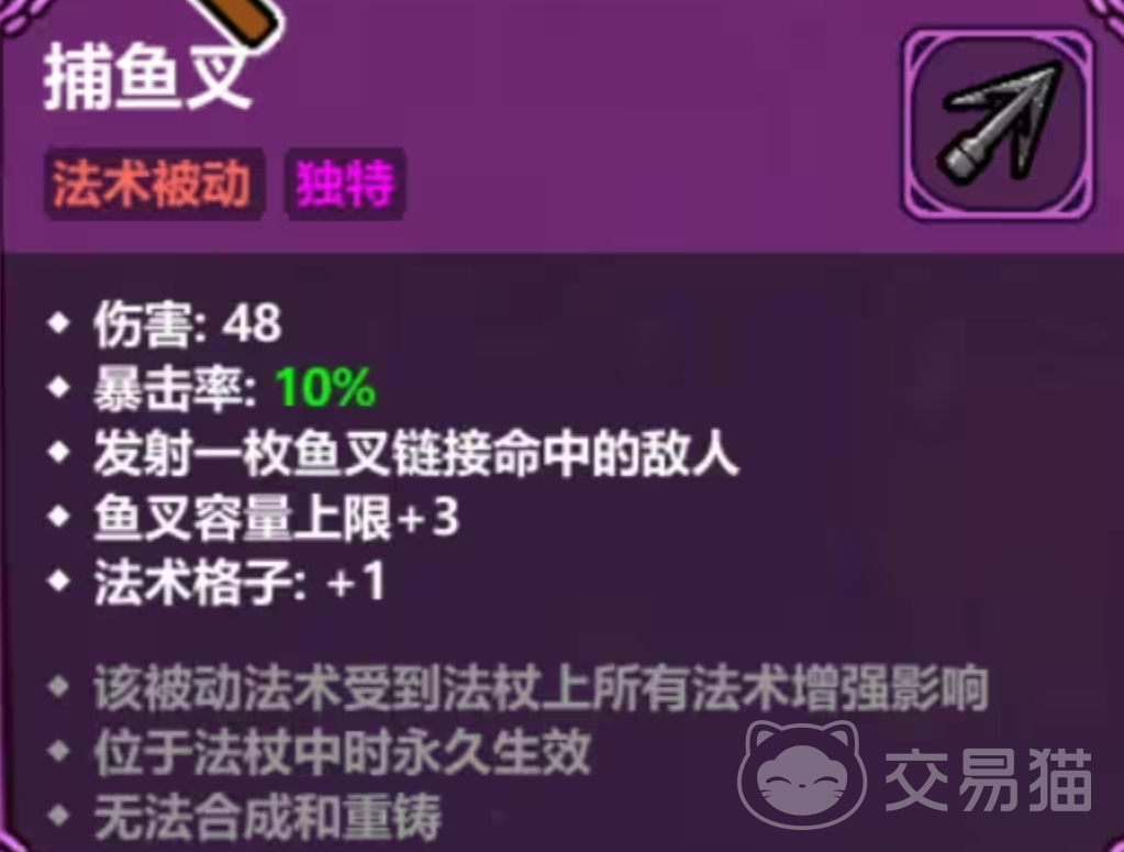 捕鱼叉作为核心输出手段,在搭配火焰晶石后可触发高额火焰属性伤害。而“火焰鱼叉”遗物则进一步强化火伤加成,最高可使火属性伤害提升至玩家生命值上限的4%,这一数值在面对高血量BOSS时尤为关键。此外,“闪电鱼叉”遗物侧重范围清怪效率,通过连锁电击快速处理杂兵,为集中资源应对精英目标创造有利条件。