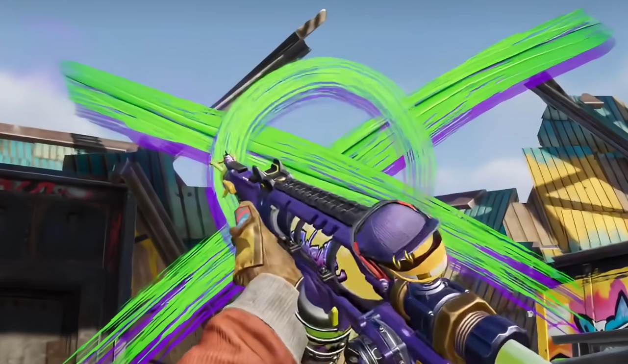 第二类为等级解锁型付费皮肤——转盘AK主题款。该皮肤需满足两个前置条件:角色等级达到9级,并完成对应主线任务链。达成后可通过商城转盘系统进行抽取。枪身主色调为深紫渐变,融合街头涂鸦风格与可动式表情公仔组件;转动时触发粒子特效,可在环境中生成短暂可视轨迹标记,兼具功能性与表现力。
