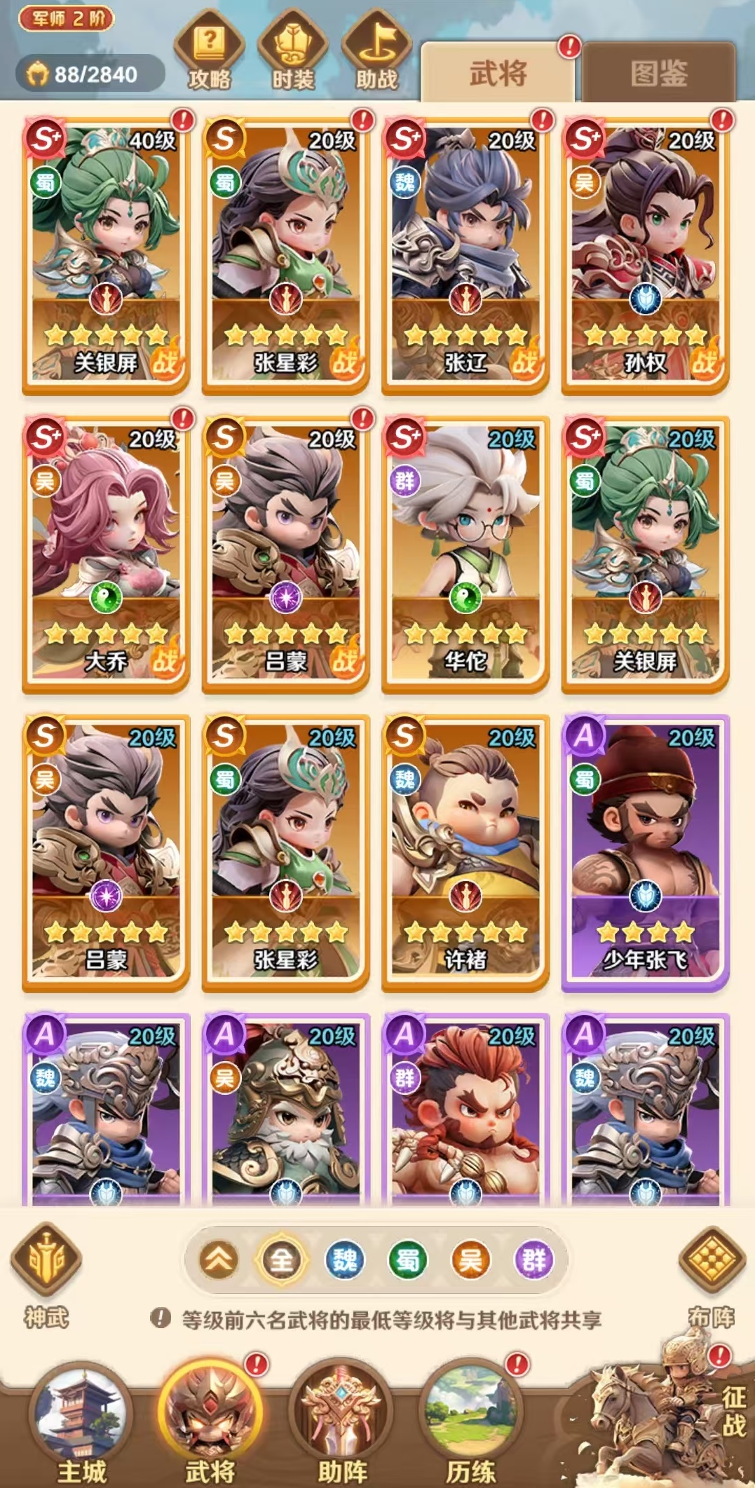 本作是一款以三国历史为世界观基础的策略向卡牌放置手游,融合多维养成体系与智能战斗逻辑。游戏强调策略深度而非单纯数值堆砌,对零氪及微氪用户尤为友好:仅需培养1至2名核心武将,即可通过“星级共享”机制,使关联武将同步提升星级,大幅减少材料重复消耗,显著降低战力成长门槛。只要成功获取关键核心武将,平民玩家亦可实现高效战力跃升。