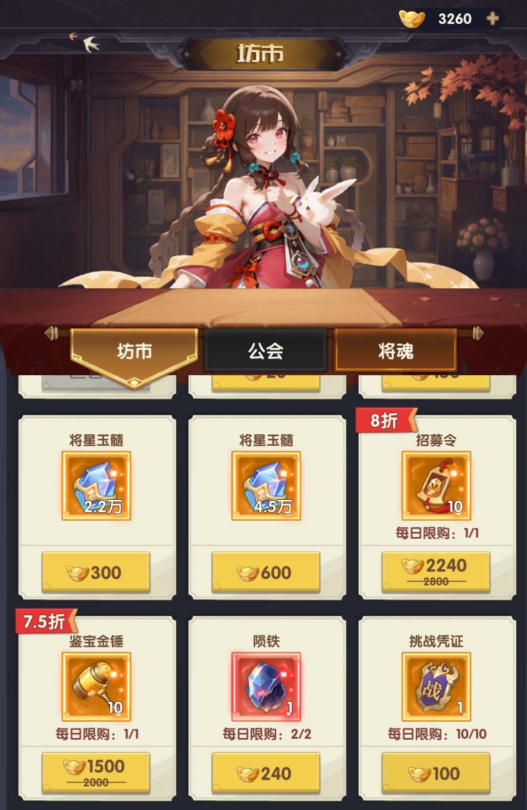 招募令的主要获取途径包括主线任务奖励——尤其是通关最终章节关卡,可稳定获得批量招募令,单次即可积攒10枚;当角色等级达到指定阈值后,“坊市”系统开启,玩家可使用金元宝兑换招募券,首充或新手阶段享有专属折扣优惠,显著提升初期抽卡效率。