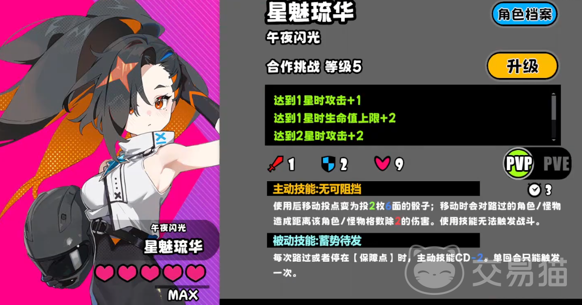 从基础属性来看,午夜闪光初始面板为攻击1、防御1、生命9;一星时攻击+1;等级2达成一星后生命上限+2;等级3升至二星时攻击再+2;等级4达到三星时攻击+1、移动距离+2。整体成长偏平缓,数值提升幅度有限,难以支撑高强度持续输出需求。