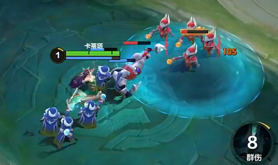 大招“叠浪奔袭”向四周释放多道环形海浪,每道均造成法术伤害与减速;被击中次数越多,单体所受总伤害越高;海浪冲击至边缘后会折返,沿原路径二次掠过,对路径上敌人再次造成等额伤害;开启期间卡蒂塔获得持续移速加成,强化追击与拉扯能力。