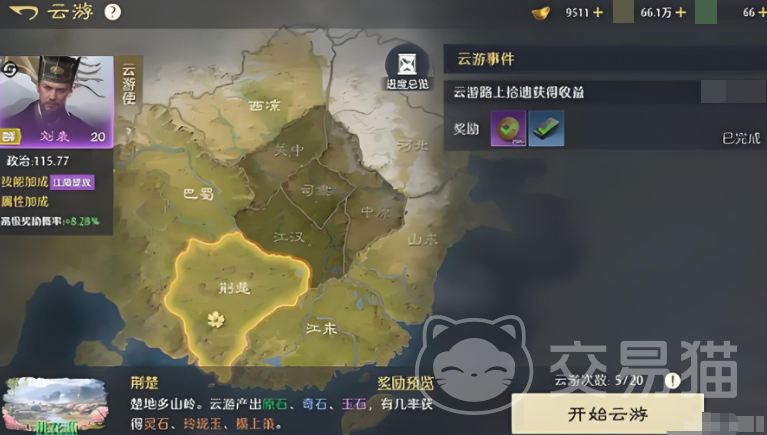 除商贾系统外,“云游”玩法是图纸获取的另一重要渠道。玩家可派遣任意已招募武将执行云游任务,每次任务完成后有概率获得免费图纸,涵盖绿、蓝、紫及橙四类品质。每日享有20次免费派遣次数,次日零点自动重置,不支持累计。尤其在游戏前期,云游是稳定获取橙色图纸的关键途径。