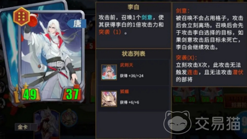 实战部署中,武则天建议全程驻场,确保鼓舞效果稳定覆盖。秦琼承担前排抗压职能,通过高格挡与减伤被动吸收敌方集火,保障后排输出环境安全。上官婉儿负责资源调度,其技能可加速卡牌抽取频率,并额外为麒麟类单位提供卡牌补充,间接强化控制链完整性。长孙无忌与李白形成属性联动组合,前者提供的增益可切实提升后者的攻击力、暴击强度等关键数值;而武则天的鼓舞则进一步压缩李白大招冷却,使其高频爆发能力提前成型,形成“启动快—连招密—收尾稳”的完整输出闭环。