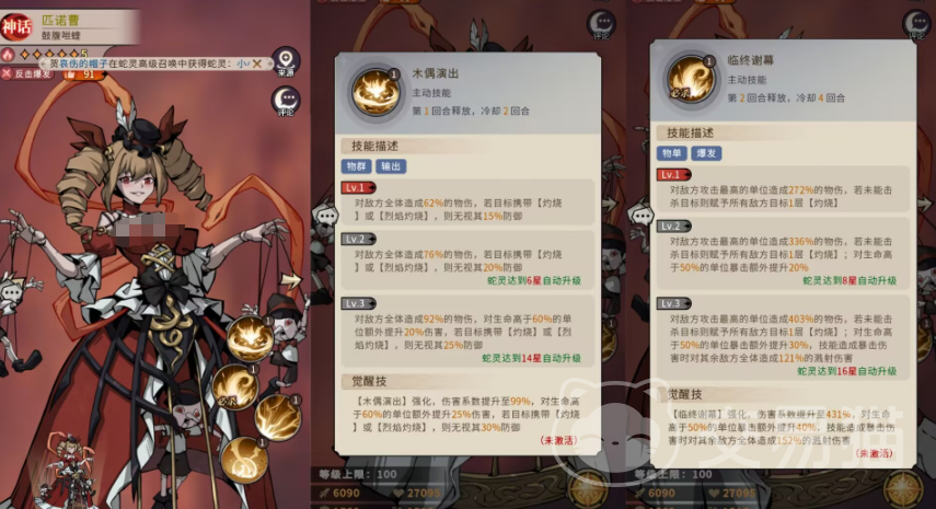 推荐的初始纯火阵容包括:红帽外婆、匹诺曹、三小恶魔、小小红帽、小猫莉娅与法海。该组合覆盖了灼烧施加、多段溅射、反伤触发、重伤叠层、自动复活及暴击增益等多项关键功能模块,且角色获取门槛较低,契合前期资源分配逻辑。其中,匹诺曹作为核心输出位,拥有可观的反击次数与范围溅射伤害,在敌人处于灼烧状态时可额外提升伤害倍率,显著强化队伍的整体持续压强。