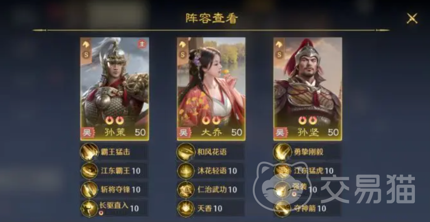 在具体阵容搭配方面,“江东系”组合展现出极强的平民适配性:大乔、孙坚、孙策三人皆可通过常规活动稳定获取,无需额外充值。该组合核心优势在于极低的战损率——在推进主线关卡或参与野外资源点争夺时,部队损耗可控,资源回收效率显著提升。更重要的是,三者同属“吴国”阵营,激活阵营羁绊后可触发群体治疗与增益效果,进一步强化持续作战能力与爆发衔接节奏。