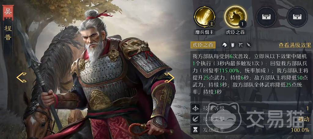 程普:反击流派关键辅助,需满红方能激活完整机制链。其被动可随机触发攻击增益与兵力恢复双重效果,与赵云搭配可构筑“反击枪”体系——在承受伤害的同时完成输出与续航闭环。虽培养周期较长,但前期投入资源预养,将大幅缩短中后期转型窗口期,对生存压力较大的副本环境具备独特适配性。