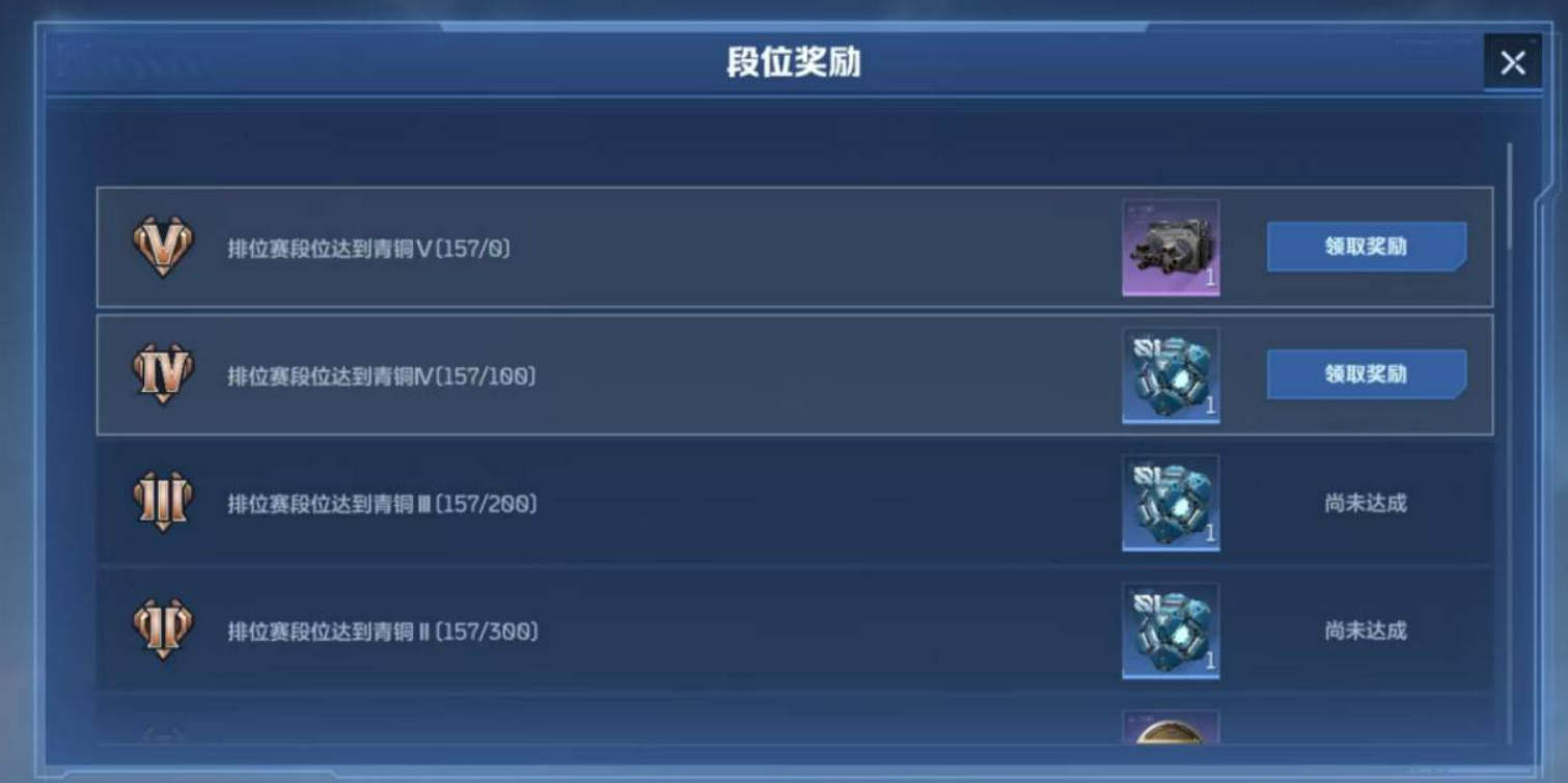 每局排位赛后均可获得荣誉点与基础物资奖励,具体数量由本局最终排名决定。达成段位晋升时,系统将发放包含荣誉点、机甲装配件、武器皮肤、头像框在内的阶段性奖励,且奖励品质随段位升高同步提升。每周排位分排名前一百的玩家,将通过游戏内邮箱领取专属周榜奖励。战神段位玩家可于赛季结算时获取限定外观——巨兽机甲“钢铁烈焰”皮肤。完成赛季目标还可分阶段领取对应成就奖励。赛季结束时,系统将依据玩家最终所处段位,向下赛季初发放NZ券作为段位继承激励。