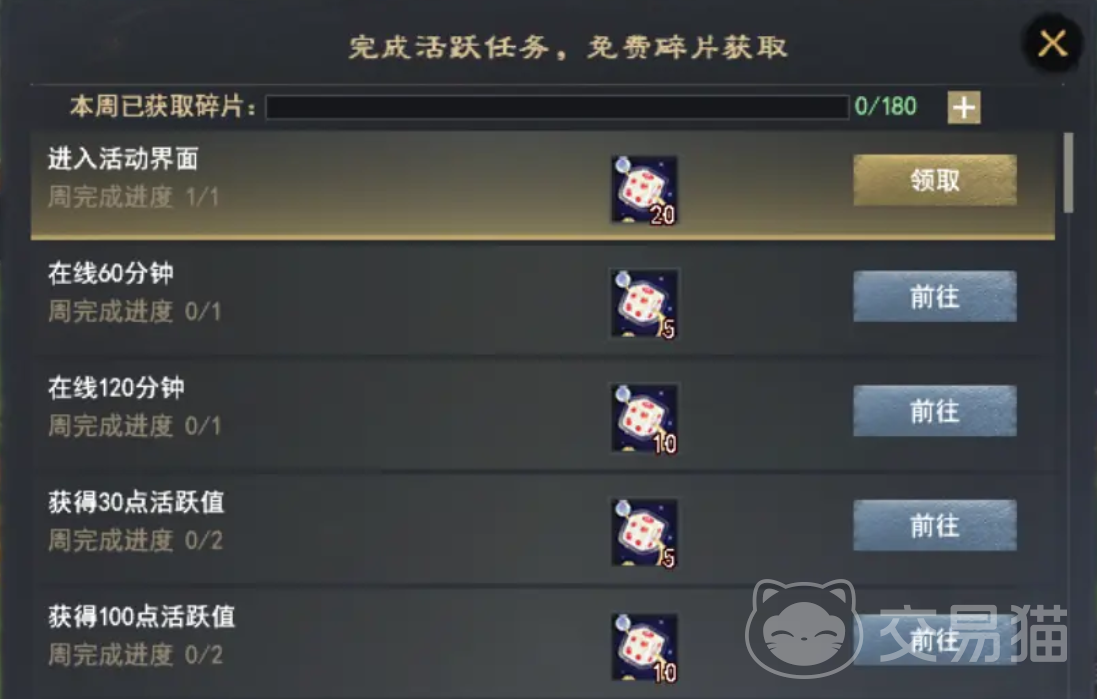 参与特定事件还可获得元宝,用于在活动商店中兑换关键道具。整体来看,大荒巡游不仅趣味性强,更通过任务驱动强化玩家日常参与感。每周完成全部巡游任务,可稳定获取180枚骰子碎片;每20枚碎片可合成1枚完整骰子,保障基础行动资源供给。