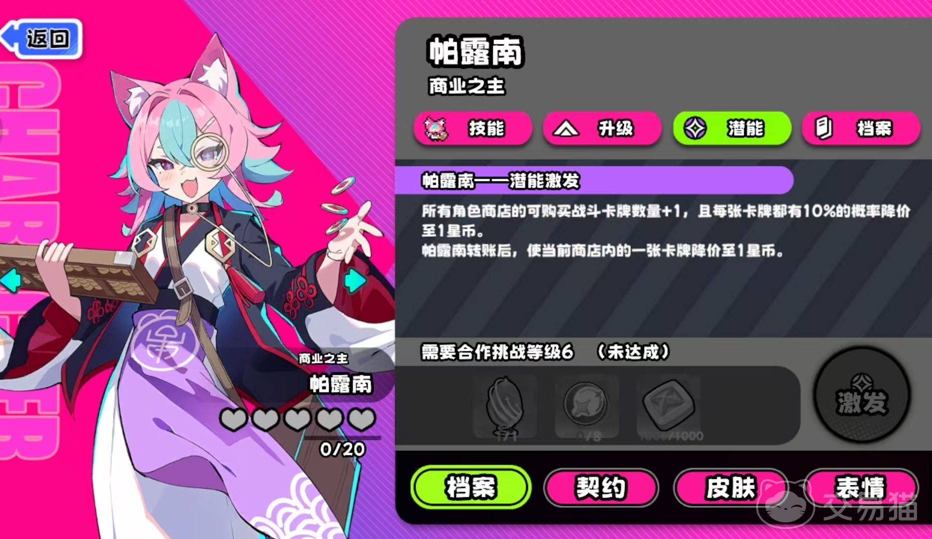 完成潜能激发后,帕露南的商店能力迎来质变:除保留“战斗牌购买数量+1”的基础加成外,所有可购卡牌均触发概率性降价机制——每张卡独立判定是否降至1星币。极端情况下,整页商店卡牌可能全部显示为1星币售价,极大压缩资源消耗。此外,在合作模式中,若帕露南向队友发起一次转账操作,当前所处商店将立即额外生成一张标价为1星币的手牌。这一机制鼓励“先转账、再购卡”的操作链,显著提升单次商店访问的综合收益。